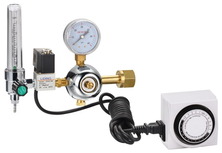 SR1590F is an automatic CO2 supply system suitable for regular CO2 use in agriculture and gardening. SR1590F consist of regulators, electromagnetic valve, Flowrator and timer. Preset outlet pressure for regulator is 50 psi. Multipoint timer enables multi-timing control over regulator outlet within 24 hours. Flowrator with explicate readings enable precise control over outlet flow-rate between 0-2 SCFH.